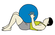 フロアに仰向けになり腹部の上にボールを乗せる。 |