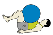 | ボールの持っている弾力性を利用したエクササイズです。動かす範囲は非常に小さいですが、うまくやれば下腹部を強く刺激することができます。「この下腹部、何とかした〜い!」と思われている方、非常に多いのではないでしょうか?