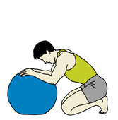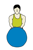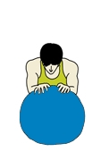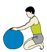フロアに膝まづいて、両方の手の平をボールのトップに乗せる。 |