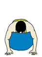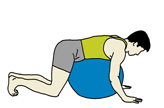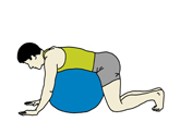 フロアに膝まづいた状態から前のボールにお腹をつけ四つん這いになる。(スタートの姿勢) 注意)ボールの大きさにも左右されると思うが、なるべく背筋はまっすぐに伸ばす。 |