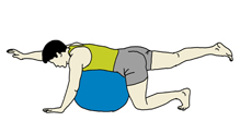 | ボールがなくても同じようにフロアに四つん這いになってできるエクササイズです。ボールを使用することによりバランスがとりやすくなりますので、その分使っている筋肉を意識していきたいものです。