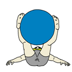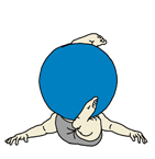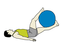 フロアに仰向けになり両足でボールをしっかりと挟んで持ち上げていく。 |