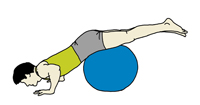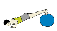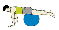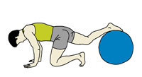 四つん這いの状態から後ろにあるボールのトップに片足ずつ足を乗せる。 |
