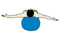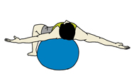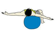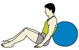 座った状態からボールを前へローリングさせて背中をつけていく。 ボールに背中をつけてフロアに座った状態からでもよい。 |