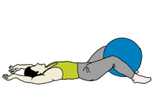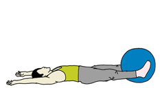 息を吸いながら、再びフロアに仰向けになる。再び、息を吐きながら、両手、両足を同時に持ち上げ、ほぼ体の真上で、足でボールを挟さみ、息を吸いながら再び仰向けになっていく。 (回数)10往復を1セットとし、1セットから3セットが目標セット数。 |