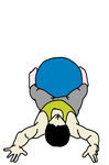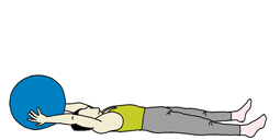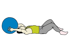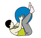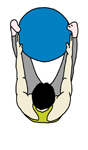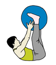 息を吐きながら、両手、両足を同時に持ち上げ、ほぼ体の真上で、ボールを両手でつかむ。 |