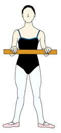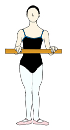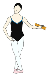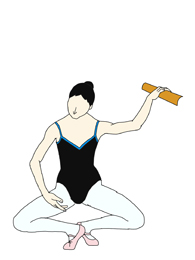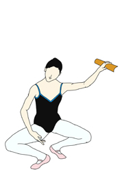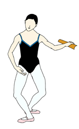 「プリエ」には「折りたたむ」という意味があり、立った状態から片方または両方の膝を曲げて腰をフロアの方に落としていく動作(パ)になります。 バレエ初心者にとっては、腕や足のポジションを覚えると同時にしっかりと身につけていかなければならない動作です。バーレッスンやセンターのアダージオなどでは必ずと言ってよいほど出てきますし、ピルエットをするときやジャンプをするときにはプリエをして体を上に持ち上げるエネルギーを得ていき、ジャンプをしてからの着地のときには、プリエでそのエネルギーを吸収し膝への負担を軽減させていきます。 プリエにはかかとをフロアから離して(第2ポジションからのものはかかとは着けておく)深く膝を曲げていくグラン・プリエと、かかとをフロアに着けたまま膝を曲げていくドゥミ・プリエの2種類があります。 プロのダンサーがグラン・プリエをするとポキポキと膝を鳴らすようなことはないのかな?などとちょっと気になる今日この頃ではあります。 下のイラストですが、両手をバーにかけているもの、片手だけのものとと統一性がないものになってしまい大変申し訳なく思います。 |