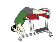 | バックエクステンションをするためのベンチになります。背骨と並行するように縦に長く伸びている背中の筋肉群(脊柱起立筋)や大殿筋、そしてハムストリングスを鍛えていきます。