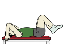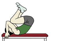 ・ベンチの上に仰向けになり、それぞれの手でベンチの縁をつかんで身体を安定させ、膝を曲げて準備する。 |