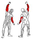 ボディウエイト・エクササイズとは自重エクササイズのことで、フリーウエイトやダンベル、またはマシンやチューブなどの用具を用いず、プッシュアップ(腕立て伏せ)に代表されるように、自分の体重だけを負荷にして行うエクササイズです。 自分の体重だけですから、フリーウエイトやマシントレーニングのように重い負荷をかけることはできませんが、 やり方や回数によってはかなりの刺激を与えることができますし、用具を必要としない分、場所を選ばずにできるメリットがあります。 ときにはイスやベンチ台、または階段などの段差を利用して行われることもありますが、ここではフラットなフロアで行うものだけを紹介しています。 また、用具を用いないエクササイズの中にはマウンテンクライマーのようなものもありますが、自分の体重を利用した筋トレというよりは、動作を素早く行うことによって、心肺持久力や敏捷性などの向上を目的としていますので、そのような動作は別の項を設けて説明していきたいと思っています。 ここでは、筋力を鍛えることをメインにした動作を説明していきたいと思います。 このボディウエイト・エクササイズでは力こぶ(上腕ニ頭筋)を鍛えるのはとても難しいので、力こぶ(上腕ニ頭筋)を鍛えたい場合は、ダンベル・エクササイズをお勧めします。