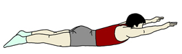 | フロアで手軽に行えるエクササイズで、背中の筋肉群に刺激を与えます。私の場合、背中の筋肉が非常に硬いので、上半身を後ろに反らせることが非常に苦手で、この手のエクササイズではほとんど上半身をフロアから持ち上げることができないのですが、それでも強い刺激は感じます。