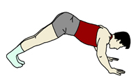 プッシュアップもいろいろな方法があり、使う筋肉も微妙に違ってきます。ぜひ、体に与える刺激を固定せずにエクササイズを行ってみてください。 |