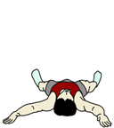フロアに大の字になる。両手、両足は大きく開いていく。 |