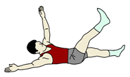 勢いは付けずに、息を吐きながら片手とその反対の片足を持ち上げていく。 可能であれば足の指をタッチしていくが、それが目的ではないので、タッチするために勢いをつけないように注意する。 基本的には「上げる・下ろす」は同じカウントで行う。同じ側を繰り返してもよいし、動画にあるように左右交互に行ってもよい。 回数:10回から15回を1セットとし、1回から3回が目標セット数となる。 |