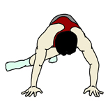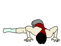 フロアへ胸を落としながら、骨盤をひねって足をサイドへ出していく。 通常のプッシュアップでは、下げるときに息を吸い、上げるときに履いていくが、このグラスホッパープッシュアップでは、下げるときの方が強度が高くなるので、逆にした方が良いと思われる。 基本的に「下げる・上げる」は同じカウントで行っていく。 回数:10回を1セットとし、1セットから3セットが目標セット数。 足をフロアへつかない場合は、無理のない回数から始めると良い。 |