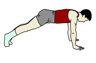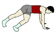 通常のプッシュアップで構えるか、足をサイドへ出すことを考えて、気持ちお尻を持ち上げ気味にしてもよい。 |