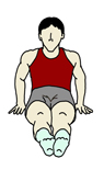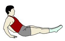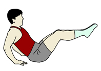 | フロアに腰を下ろして行う動作になります。このほかフロアに腰を下ろして行う動作には「シッティング・レッグレイズ」などもありますので、一緒にやられてめてはいかがでしょうか。 | ![]() |