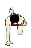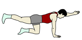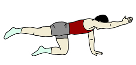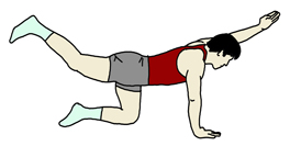 同じ側の手と足を伸ばしたもの。「ダイアゴナル」ではなくなるが、通常のものがしっかりとできるようであれば、挑戦してみるとよい。筋力よりはバランスを取る力が要求される。 |