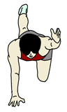 息を吐きながら、対角線上の片手、片足を引っ張り合うように伸ばしていく。 基本的には、伸ばした手の指先からかかとまではフロアと平行になるようにする。 フロアに着いた足のつま先は、イラストにあるようにポイントにしてもよいし、バランスが取りにくい場合は足首を曲げてフレックスにして、足の指の裏側をフロアにつけて安定を取るとよい。 可能であれば、伸ばしきった状態でしばらくその姿勢を維持すると、より使っている筋肉を刺激することができる。 同じ側を繰り返し練習してもよいし、左右交互に行えばよりバランス感覚を養うエクササイズになる。 |