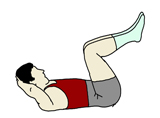 腹筋の特に下腹部を鍛える効果がありますが、ややもすると足を上げることに意識が行きがちですが、下腹部を効果的に鍛えたい場合は下げる方に意識を集中させましょう。 下の解説では、足を上げた状態から始めています。 |