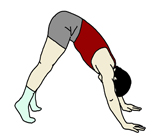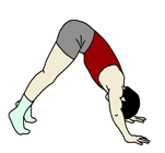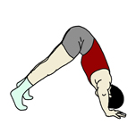 プッシュアップ(スタンダード)の構えから ・かかとをフロアから離し、お尻を持ち上げていく。 ・背筋をまっすぐ伸ばし、横から見た時に、上半身と腕のラインがほぼ 直線になるようにする。(一つの目安) ・膝はなるべく伸ばしておく。 ・視線は両足の指を結んだ線の真ん中あたりに落とす。 |