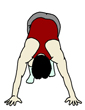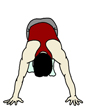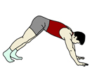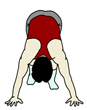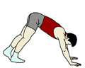 背筋をなるべくまっすぐに保ったまま、少しずつで構わないので、左右交互に足を前に出し手の方に歩いていく。このとき、なるべく膝を曲げないで進んでいく。 どこまで進めるかは、太ももの裏にあるハムストリングスの筋肉群の柔軟性によって個人差があるので、無理のない範囲内で進めば良い。 そして、来た道を戻り、再びスターとの体勢に戻る。 回数:5〜10往復を1セットとし、1〜3セットが目標セット数。 |
