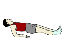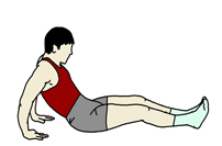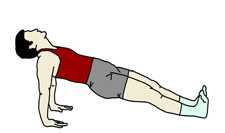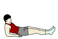 フロアに腰を下ろした状態から手の平を後方のフロアに着き、足を伸ばして腰を浮かせて、なるべく肩からかかとまでのラインが直線になるようにする。 視線は天井に向ける。 時間:無理のない範囲内で行うこと。 |