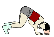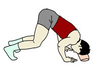 膝を浮かせて手で補助をしないものは首にかなりの負担がかかるので、少しずつレベルアップを図りながら行うようにすること。 |