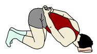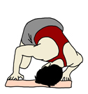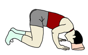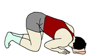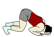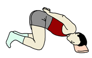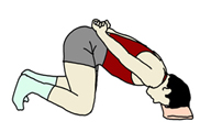タオルなどの上に手で補助をして、額をくっつける。 |