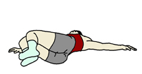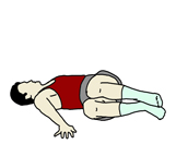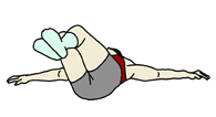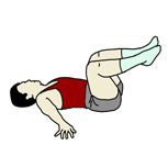 足を、ワイパーのようにフロアに倒していく。(できる限りフロアに近づけていくが、肩が浮いてしまう場合は、調節をしていく) 倒す方と反対側の肩はなるべくフロアから離さないようにする。 視線は、真上でもよいが、倒す方向に向けた方が倒す意識がしやすいのではないかと思われる。 基本的に「倒す・戻す」は同じカウントで行う。 回数:10回から15回を1セットとし、1セットから3セットが目標セット数。 |