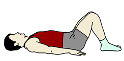《フロアに仰向けになり、膝を立てて》