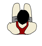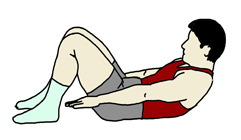 フロアに仰向けになり膝を立てる。両腕を、脇を開けずにフロアから浮かして、フロアと平行になるように伸ばす。 頭はフロアから少し浮かしておくとよい。 |
