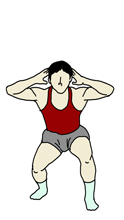 「筋肉に刺激を与える」という意味では通常のスクワットの方が効率的だとは思いますが、例えば、ラグビーとかアメフトなどの競技においては、常に両足をそろえて腰を落とすわけではなく、スクラムなどを組む時は前後の足がそろわない時が多いと思います。 そういう意味では、このような形でスクワットを行うのにも意味があるのではないでしょうか。 ただし、後ろの足の膝はどうしても指先から出てしまいますので、膝に不安がある方は注意をしていかなければなりません。 |