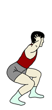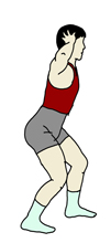 背筋はまっすぐ保ちながら腰を落としていく。 後ろ足の膝の負担を考えながら落とす幅を調節していくこと。 呼吸は落とすときに吸い、上げるときに吐いていく。 基本的には「落とす・上げる」は同じカウントで行う。 回数:15回から20回を1セットとし、1セットから3セットが目標セット数。 |