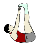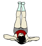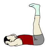 息を吐きながら、足の位置は固定したままなるべく勢いをつけずに上半身を起こし、指先をタッチする。 基本的には、上げるときと同じカウントで下げていく。 (回数)1セットを10回から15回とし、1セットから3セットを目標とするようにする。 |
