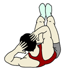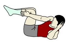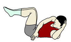 息を吐きながら、肘を膝に近づけるように上半身をひねりながら上げていく。 また、やり方としては、一度上げきってからひねると言う方法もある。 基本的には、上げるときと同じカウントで下げていく。 (回数)1セットを10回から15回とし、1セットから3セットを目標とするようにする。 |