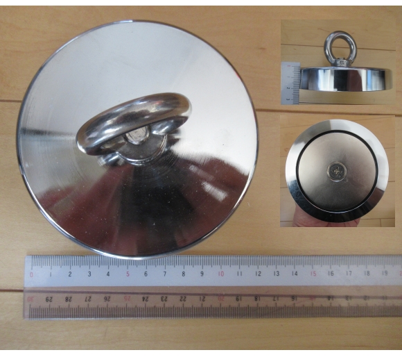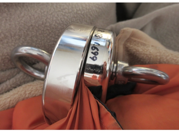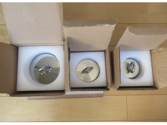 今まで所有していたものと今回購入した最小のものを、「 近づけたらどのくらい引き合うだろう? 」と胸の前で近づけて行った。ちょっと油断していたのか、着ていたダウンベストを挟んでくっついてしまったのである。いや〜、そこから離すのが大変だった。それぞれの磁石についている輪に指を入れて引っ張って離そうとしてもびくともしなかった。そこで、マイナスのドライバー (flat-bladed screwdriver) を2つの磁石の間の僅かな隙間に入れて、少しずつ広げて行って何とか分離することができた。まったく「やれやれ」である。