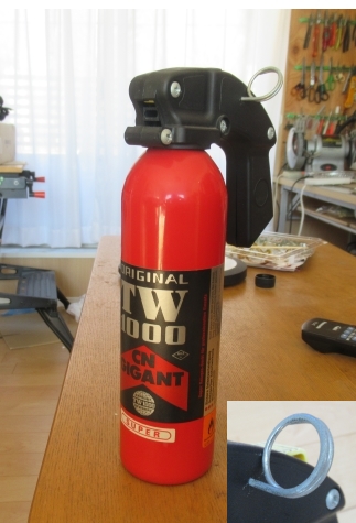 縦 (length) はだいたい25pくらいで重さは320gほど。一応、誤って噴射レバーを押さないように安全ピンがかけられている。