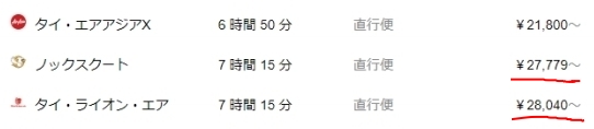 今回もグーグルで検索をかけて一番安価であったエアアジアを選んだわけだが、結局はオプションを付けたために検索で表示された金額では済まなかったことになる。よって、「 もしかしたら2番目のノックスクートや3番目のタイ・ライオン・エアの方が安かったのでは?」という懸念は残る。