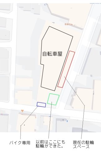 よって、そこを以前のように駐輪場として開放してくれれば、「 留める場所が見当たらな!」などということはあり得ない。全く「 利用客、ファースト 」ではない現状 (present situation) となっている。