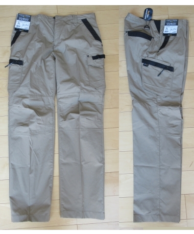 通常のパンツにサイドにカーゴポケットが1個ずつついているだけなので前部で6個となる。まだ、試着しただけなので何とも言えないが、「 あと2個くらい欲しかったな〜 」という気がしないでもない。また、わがままを言わせてもらうと、現在履いているカーゴパンツのようにニーパッドをいれるポケットが欲しかった。まあ、普段からニーパッドを入れて履いている人なんて私くらいなのかもしれないが…。