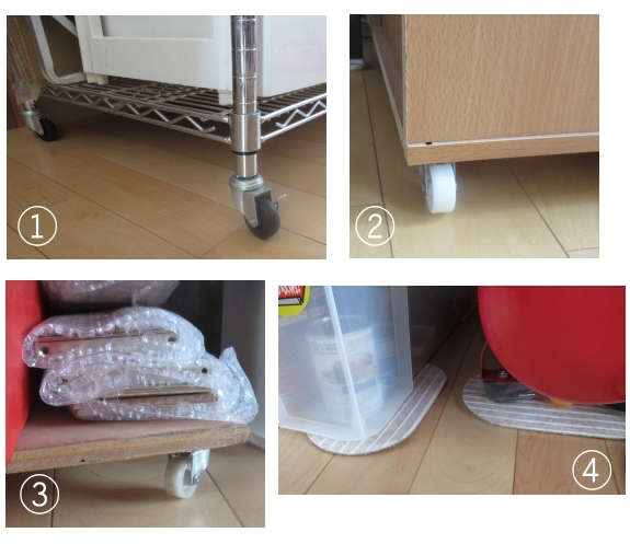 A カラーボックスなどにもキャスターを付けて移動しやすくした。
