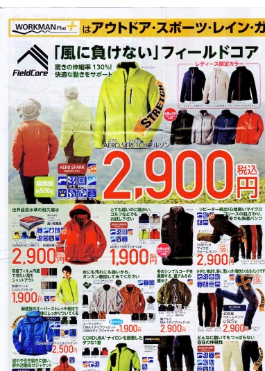 カラフルなウエアの写真が結構安価な値段で掲載されているので「へぇ〜、どのこショップだろう?」とショップ名を探してみると、チラシの上の方に「WORKMAN Plus」と印字されていた。「んっ、WORKMAN Plusって、あの「ワークマン」のことなのだろうか?」と思わざるを得なかった。