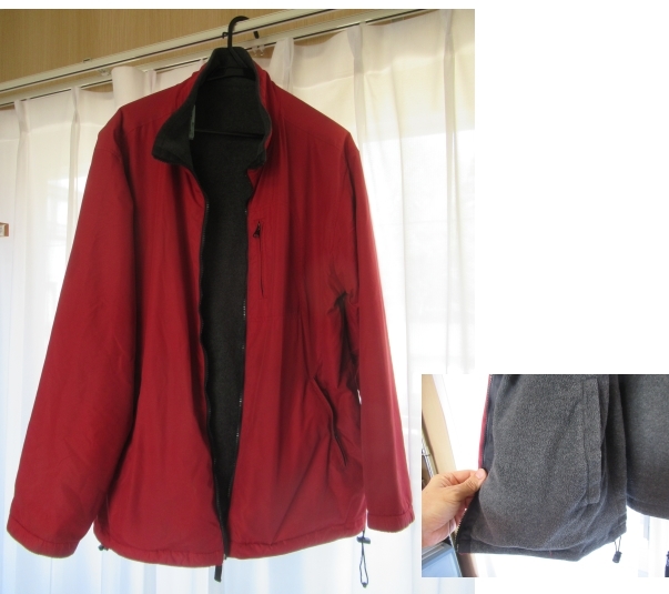 裏地 (lining material) はフリース生地になっているので、自転車で20分程度の道のりであればこれで事足りる。それに、自宅でも洗濯 (washing) できるので、まあ、「楽チン」ではある。