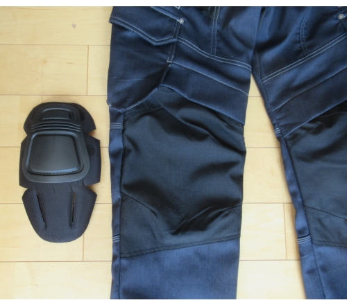 ワークマンの「 コーデュラ・ユーロ、デュアルパンツ 」の場合は、ニーパッドは膝のポケットに全て収まってしまうのでほとんど目立たない。もちろん、パッドを入れていれば多少のゴワゴワ感は否定できないが、フロアに膝をつくときはかなり楽だし、転倒時には膝への衝撃 (shock/impact) をかなり緩和してくれる (cushion) ことは間違いない。