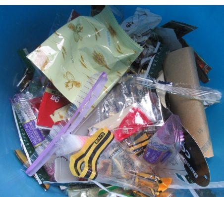 「 必ず 」と言ってよいほどプラスチックごみが毎日出る。特に私の場合は、そのほとんどがお菓子などの包装 (wrapping?) となる。「ちょっと控えなければ…」と思うのだが、これがなかなか…。