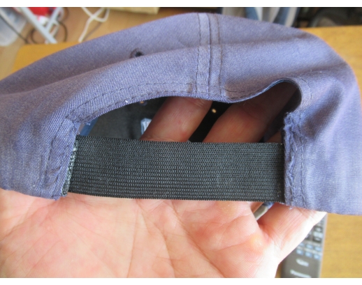 さて、もともと帽子に付いていた大きさを調節するためのプラスチック樹脂のバンドの代替として (in place of) ゴムバンドを用意したので、次はいよいよ修繕の開始となる。