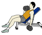 | 傾斜させたベンチを利用したアームカールになります。身体が傾斜しているためか、ダンベルを上げたときに前腕が自分から見て「逆ハの字」になり上腕二頭筋の特に長頭をより強く刺激します。