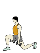 | 「リアランジ」とも。このダンベルエクササイズにしても、バーベル、またはボディウエイトにしても、あまり頻繁に行われる動作ではないかもしれません。