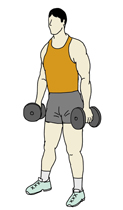 ・ダンベルを持ち上げていく。 ・再びダンベルを下ろし、1のスタートの状態に戻す。 |